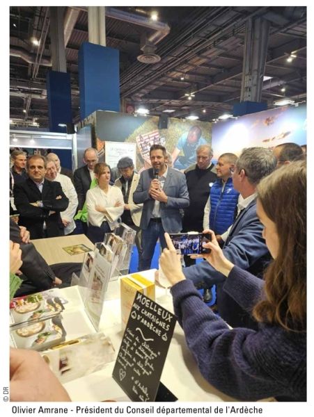 "On est dans l’incertitude de ce qui va se passer" déplorait Julia BURILLON, nouvelle élue de la Conf’07. Cette bergère qui, avec son compagnon, gère un troupeau d’une centaine de chèvres et brebis dans le sud du département était partagée entre la fierté de son élection et les incertitudes sur le devenir de son mandat. À contrario, Aurélien MOURIER, tête de liste du même syndicat, se voulait plus confiant. Il avait peu de doute quant aux résultats de la prochaine session d’installation, à travers l’élection des collèges, qui devrait consacrer la victoire du Syndicat paysan. Et s’il était conscient que la transition avec l’ancienne mandature serait délicate, il focalisait ce jour-là ses efforts vers les filières du département avec lesquelles le dialogue semblait bien engagé. De même qu'il tenait à préciser que sa première mesure serait d'intégrer des représentants des syndicats minoritaires au sein des bureaux, par souci du pluralisme. Pour Olivier AMRANE - le président du Conseil départemental (LR) – l’enjeu de ce salon ne devait souffrir d’aucunes fausses notes. "Laissez respirer les agriculteurs qui en ont bien besoin". A deux reprises, le patron du Département a formulé cette supplique qui, dans le contexte de cette journée, semblait résonner comme une boutade qu’il s'adressait àlui-même, personne n’ayant l’intention de priver quiconque d’oxygène. Celui pour qui "L'agriculture est une priorité départementale" a une nouvelle fois exprimé ses inquiétudes face aux menaces des périodes de sécheresse en été. Il a donc défendu un développement du stockage de l'eau plus efficient. Il sait le dossier délicat, voire sulfureux. Prudemment, le Président du département a suggéré de lever quelques règles, en ajoutant aussitôt, "de manière raisonnée" C’est lui qui avait œuvré en 2022 pour que l’Ardèche retrouve sa place au Salon de l’agriculture après plusieurs décennies d’absence. Une initiative unanimement appréciée qui se montrera une nouvelle fois efficace pour mettre en valeur toutes les filières et les produits du département.